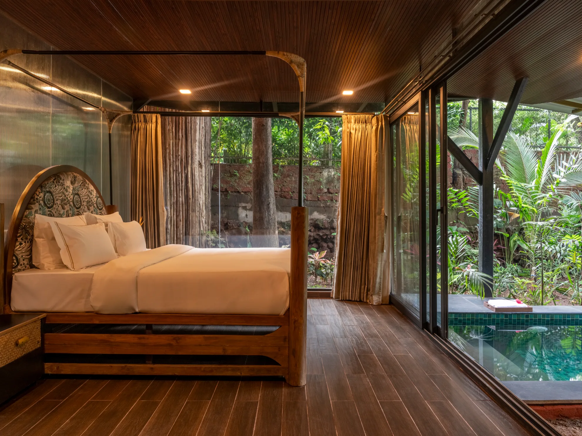 Optimizing space and resources, the glass houses are built to radiate freedom, flexibility and fluidity. Made from glass, the enclosures give you a captivating peak into a panoramic landscape of nature’s very own lap. Fitted with a spacious glassed cabin bathroom, and private garden area, bask in the solace of luxurious comfort and clean living.